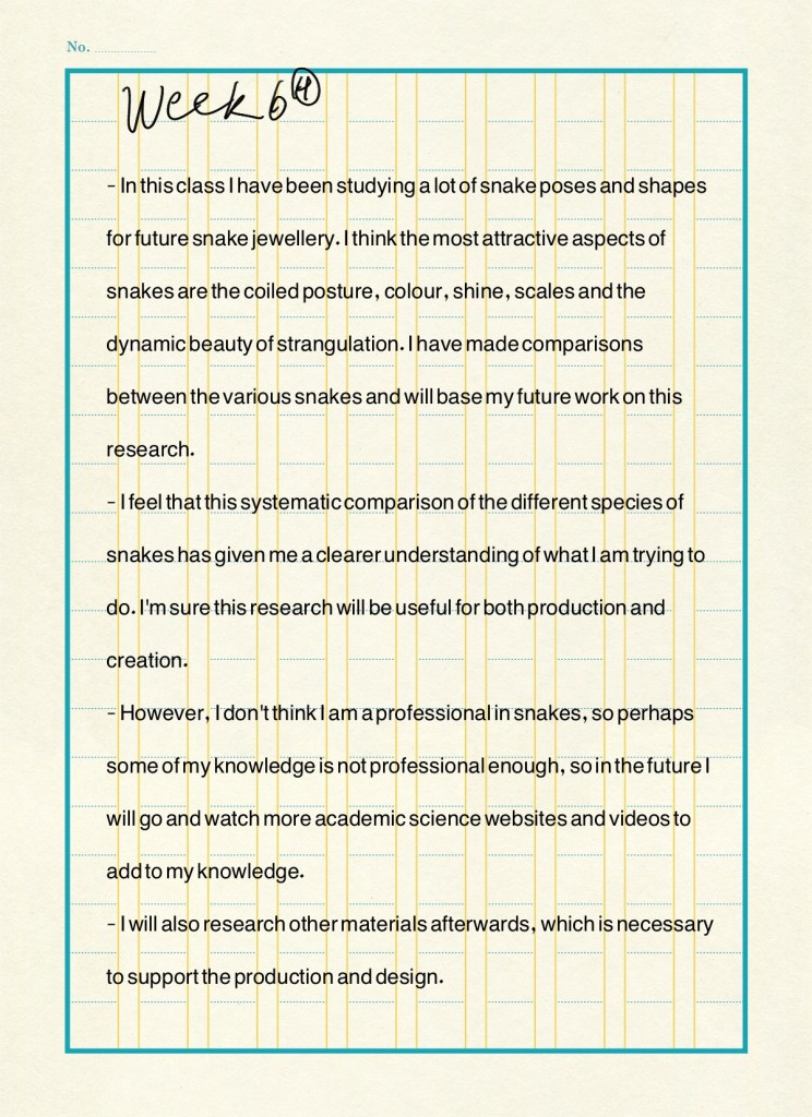 All these things have their roots in Identification – structure, and it goes without saying that the structure-related jewellery paintings are a very direct link. The snake related ones are derived from the final work on the changing space and the changing objects such as snakes and prey. And finally about the structure and documentation of life, these are the first few that I started with when I was working on the 20 drafts. I believe that everything is inspired by life, so I wanted to write down the feelings I encountered in my life first. This will then lead to the most straightforward structure-related pieces, and the more developed snake-related decorations.