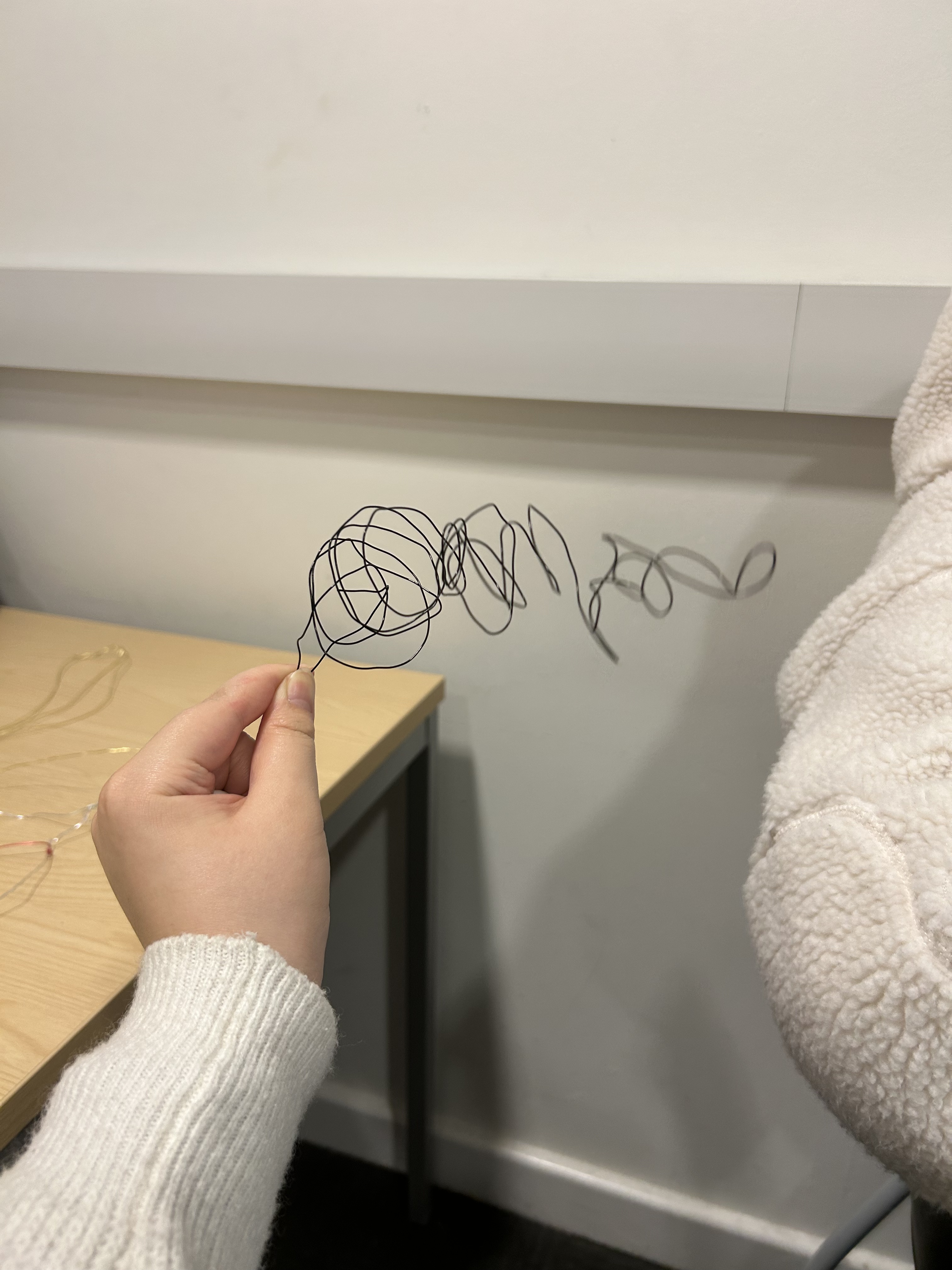 - After I wrapped the wire around my hand and struggled to free it, I wanted to record the strength of my struggle with the wire.