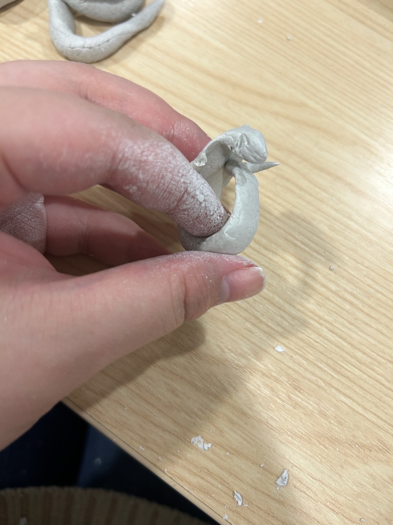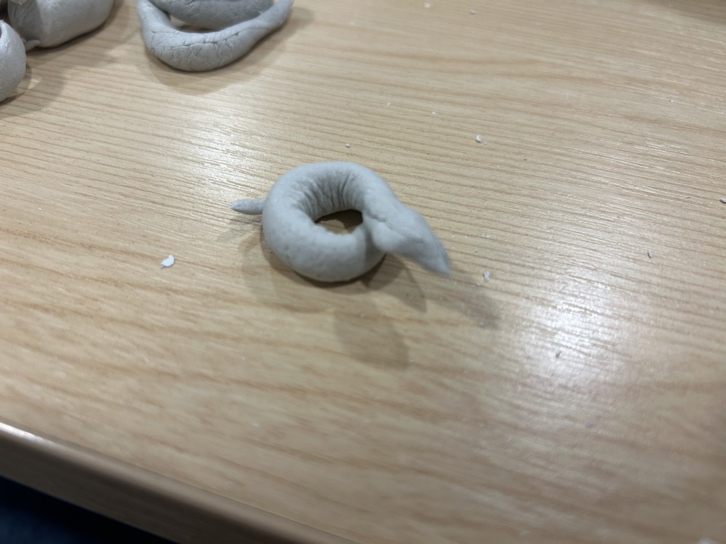 My final work is related to a snake. I want to make a snake necklace and so far only the body of the snake has been identified using real beads. But neither the shape of the snake’s head nor the proportions of the snake’s body have been decided yet. In the end I decided to use clay to help me make a quick and clear comparison of the image of the snake I wanted to refer to.