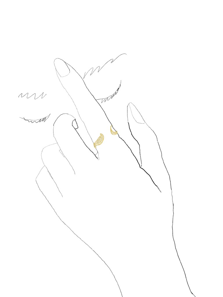 - Gold wire woven pig-nosed snake ring, my draft of this design is a ring woven with gold wire. This craft can be seen in Chinese European Turkish jewellery and furniture. I think it is very present and expressive, but has a lighter and less heavy expression. It suits the pig-nosed snake, which is a relatively small type of snake among snakes and has a very cute face. Also the golden weave is a similar design to the head of the snake I envisage in my final work. So I drew it out as an experiment to make sure the final design was suitable for this kind of expression.