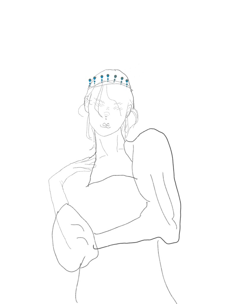 - The blue snake armlet. I think this would be an enamel texture. It is a reference to the Egyptian and Greek style with a strong sense of coiling. The reason for using enamel is that I wanted the representation to be closer to the snake itself. Unlike the pearls, which are not really similar to the snakes themselves, the enamel has a bright colour and a strong texture. The colour of the enamel is bright and shiny, which is very much like a tropical snake. The main reason for this is to give a more realistic representation of the snake’s scales and bright colours.