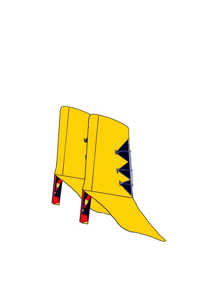 - The boots, the colour scheme is inspired by the common colour scheme found on Bauhausist posters. That is, yellow black red and white. I wanted to try and create a shoe in this colour which is full of structure. It was more like incorporating the Bauhaus style into this creation. At the same time it adds my own personal touch, which is a tight, irregular and irrational structure. One can feel it in the heel part of the shoe.