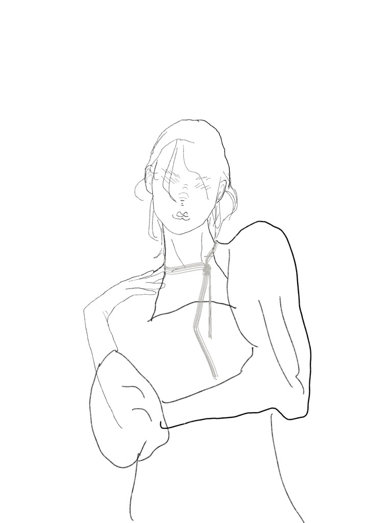 This is the most satisfying of the snake ornament sections that I have selected from 20 drafts. After drawing this cobra pearl necklace I realised that jewellery that could be wrapped around the body seemed to go well with animals and snakes. So I did five more drafts of the same theme.