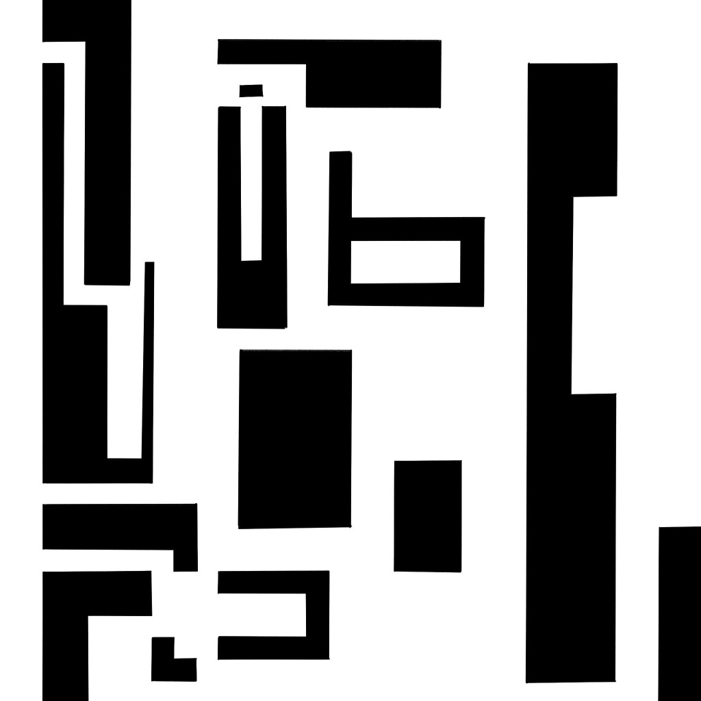 - When it comes to things related to structures one thinks of churches, and this painting is inspired by church windows. Like the shapes of the mountains and the sun, the simple black and white is reflected in the windows. The irregular geometric shapes are at once like the landscape outside the window, like the window flowers on it, and like the broken glass itself. I find it fascinating that the structure allows for endless speculation. And this work is about capturing that conjecture in a partly figurative matter.