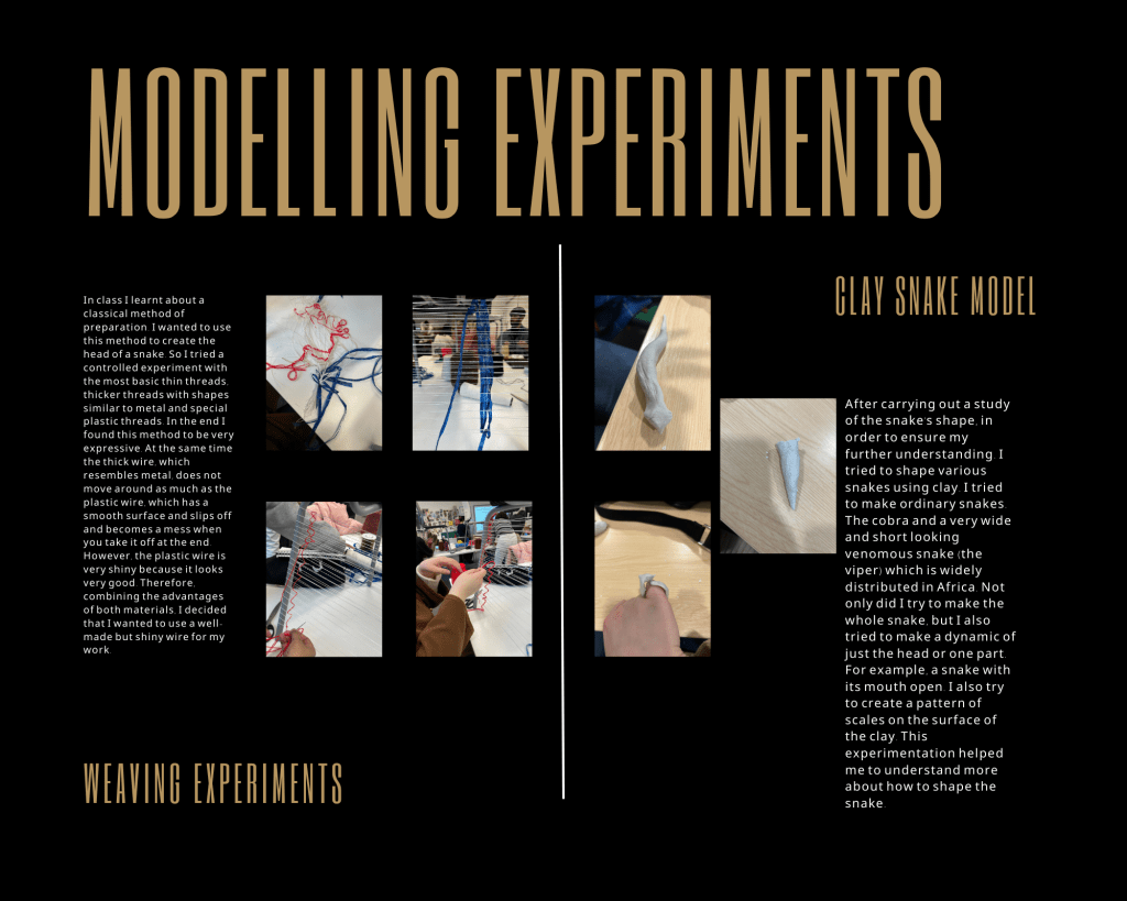 This inspired me to think about the form of the pearl snake’s head for my final work. Now I’ve decided that I’m going to use fine wire in the traditional way.